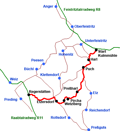 R8 über das Apfeldorf Puch bis zum Ziel beim Raabtalradweg